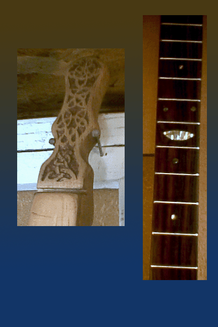 custom wood carvings are also available in a number of styles including this example of Celtic Knotwork or a variety of abalone inlays.